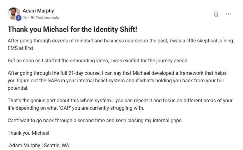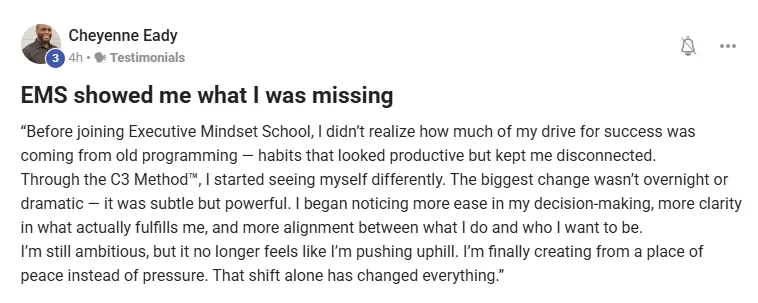 "Before EMS, life was good but needed improvement in emotions, discipline, mindset, and subconscious reprogramming.