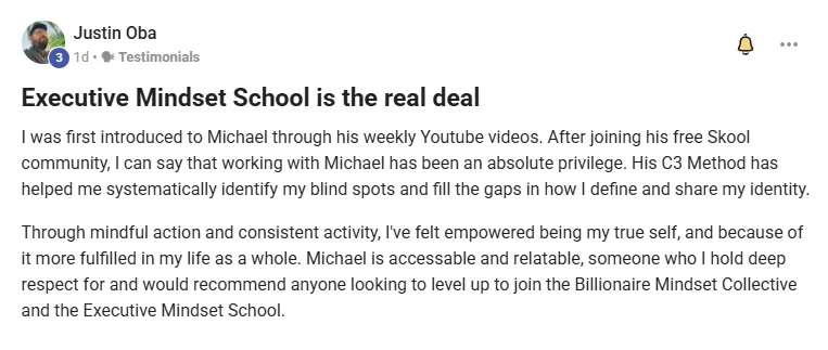 "Yooo never knew mindset coaching was a thing or that it was needed until I met Michael!